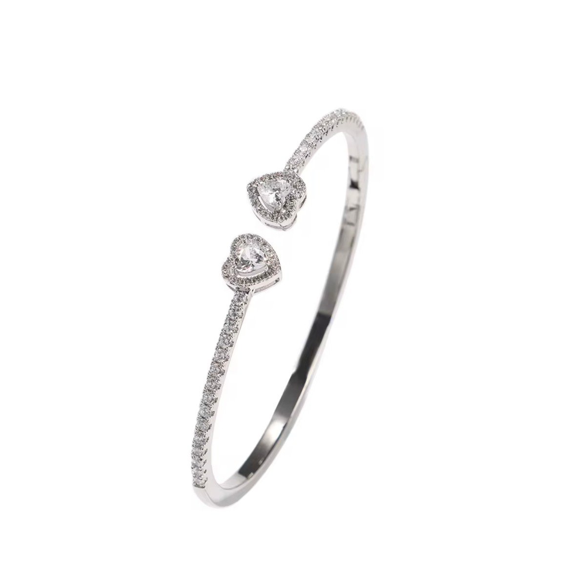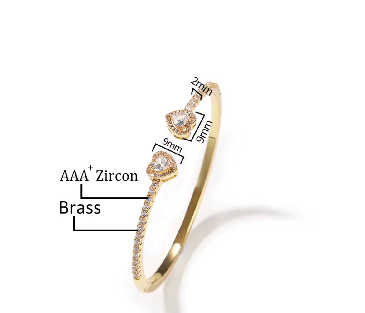 πIced Out Bling CZ Heart Bangle Thin Bracelet Double Heart High Quality Charm Bangle π